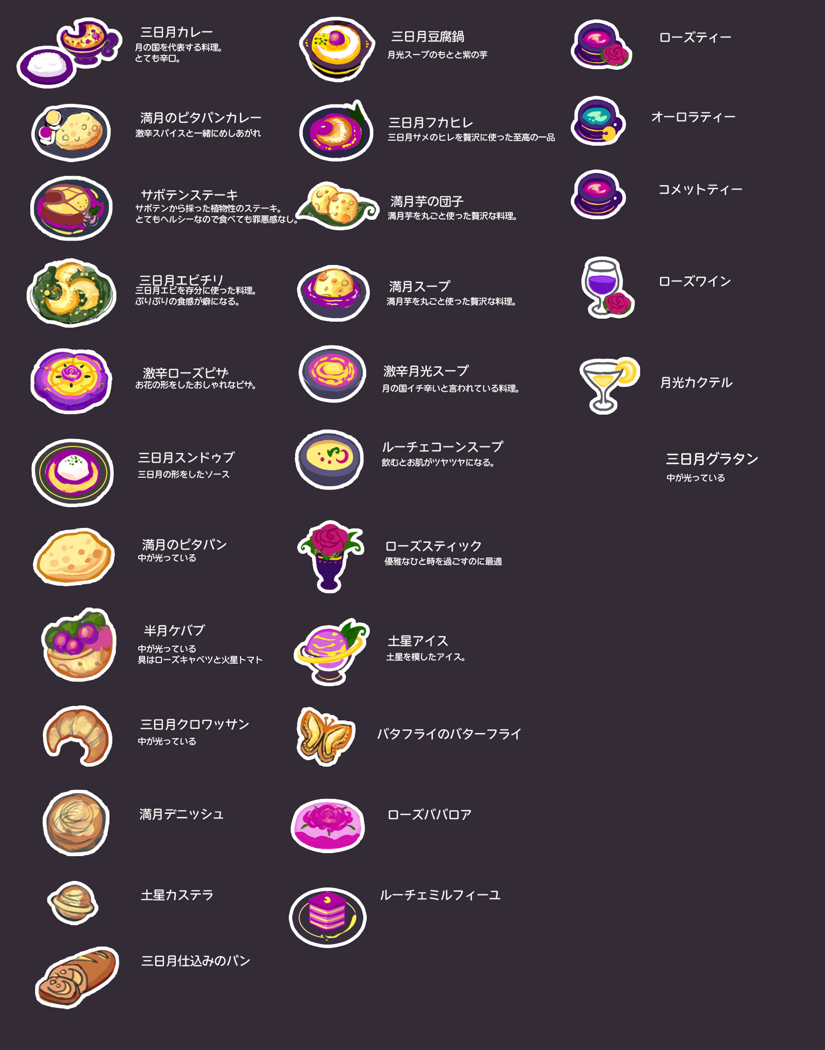月の国の料理集(増えた)